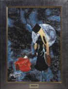 銀河鉄道999 13種類の天然石絵画 松本零士サイン入り メーテル車掌(縦) サイン入り フレームシルバー2段重ね